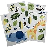 The Jungle 123 Nursery Wall Decals features four sheets of removeable and repositionable wall d