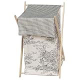 JoJo Designs coordinating stylish hamper matches exclusively with their JoJo Bedding Sets.Now JoJo has found a way to make even the laundry look adorable.The removable hamper body is secured to the wooden frame with corner loops and velcro.A removable mesh inner bag is also included.It fits inside the hamper and lifts out easily for convenience when emptying and toting the laundry. The fabric flap that covers the hamper opening is easily flipped out of the way when needed. The collapsible wooden frame can be folded up for compact storage in a closet or the laundry room.