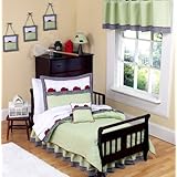 Ladybug Parade 5 pc. Toddler Bedding Ensemble has all that your growing little child will need.Let the young toddler in your home drift off to sleep on this unique and exquisite set. Delicate Embroidered Ladybugs march across this delightful set.Designed in a Soft Sage Green and Crisp White, with red and black accents, this set is truly stunning.A black and white gingham ruffled top border adds that extra special touch.This whimsical toddler set is really amazing in person.It is made of 100% cotton and every piece in inspected for the highest quality.
