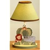 Happy Tails Nursery Lamp from Bedtime Originals by Lambs and Ivy. Features a lion and hippo cut-out on the base, with a monkey in a tree cut-out behind them. Also comes with a sage gingham checked lamp shade with brown trim. Takes up to a 40 watt, standard sized bulb (not included). Has on/off switch on light socket. Coordinates perfectly with Happy Tails baby bedding and accessories. Measures 10" x 18" high.