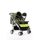 (More customer reviews)I have four children, 4 and 6 year old boys and I have twin girls that are now 1 year old.I purchased this stroller when they were about 9 months.I absolutely LOVE it.It is easy to fold and unfold.It also is freestanding when in the folded position, no worry about it tipping over or anything.You can put a carseat in on one side.It comes with a strap that you attach to the stroller and it snaps around the carseat, just as in any other stroller that the carseat "snaps" into.If you're in a pinch, you could fit two carseats in there, but be sure to have two straps - of course I'm sure this is NOT reccommended by the manufacturer.But just thought I would put that in there.The canopies by far are the coolest feature.They come all the way down to the bar and have a "viewing window" for the children so they can see where they are going.If it's hot, you can unzip the last zipper and it unfolds the netting in the back so air can flow through, but still keep the sun out of the kids' eyes.We used the boot (that came with it) all winter long and it kept my girls cozy for those trips in and out in the cold weather.I also have two sons in two different schools.Therefore, I used this thing a minimum of 8 times a day.If I can do it without complaining, this stroller makes my job that much easier! It steers great and fits through STANDARD doorways.I do nudge the cupholder here and there through doors, but it's worth it.I had the long double stroller frame for their carseats, but I believe the girls LOVE the way they can sit next to each other and see each other better.The only disadvantage is shopping with it in small stores.Not that it doesn't travel well, however, in department stores and clothing shops while trying to navigate in between displays, it can be a bit cumbersome.But again, I use thing stroller in and out a minimum of 8 times a day and LOVE it!I can't say enough!