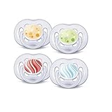 Ideal for babys delicate skin, these pacifiers have a curved shield with extra vents to promote air circulation. This helps to prevent skin irritation and chapping. Designed with the highest safety standards, AVENT pacifiers have odorless, tasteless silicone nipples that reduce risks related to allergies. As recommended by pediatricians, the nipple is symmetrical, so right side up or upside down, AVENT pacifiers ensure the proper development of baby's teeth and gums.