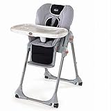 Chicco's Polly Highchair has the slimmest fold in its class! The Polly Highchair's seven height positions, three reclining positions, and one-hand tray removal make the Polly the most convenient highchair to maneuver. Its highlighted and clearly visible buttons won't leave you searching for how to adjust the highchair to make your child most comfortable. The Polly also makes cleaning easy with its dishwasher-safe, tray insert and two cushioned, seat pads that are easy to clean. The Chicco Polly puts safety first by including a five-point safety harness and brakes on all wheels.